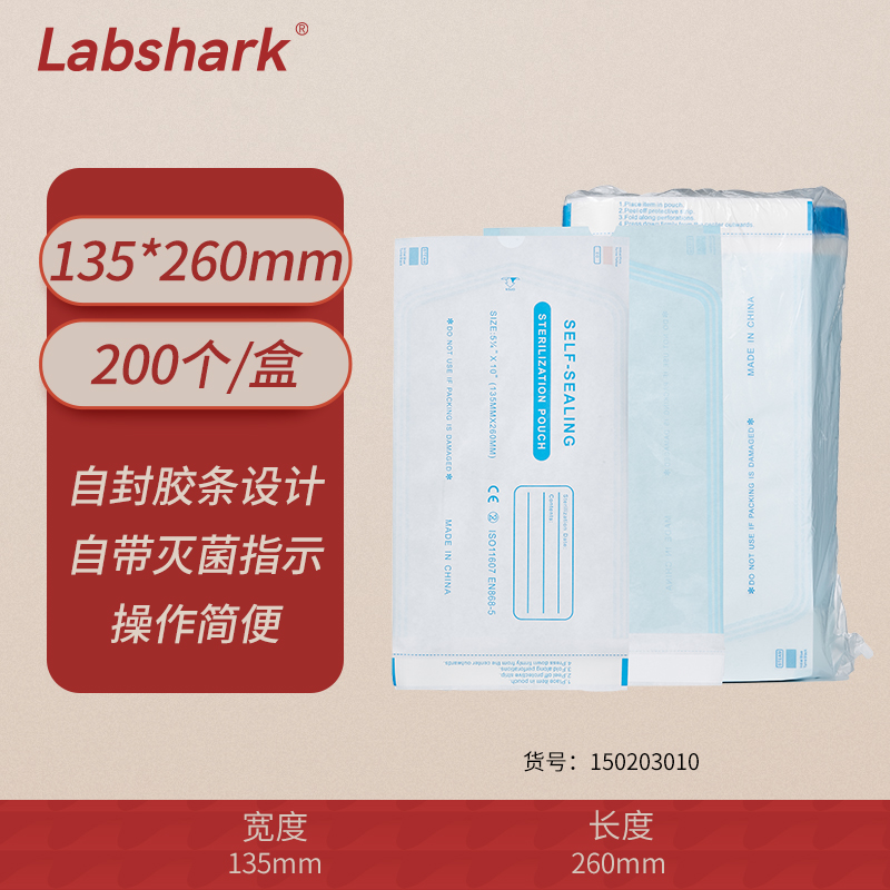 自封滅菌袋135*260mm(帶變色油墨) 200張/盒 110614004