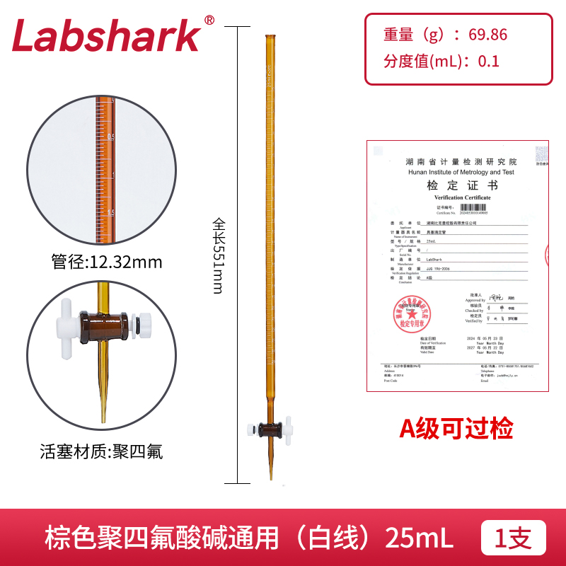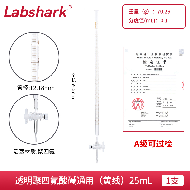 聚四氟透明酸式(刻度藍(lán)色) 25ml 130113029