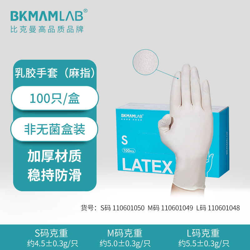 乳膠手套 100只/盒(加厚|麻指)M碼 110601049