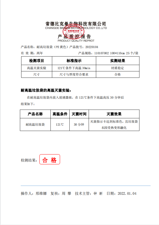 耐高溫垃圾袋 黃色 100x110cm (PE復(fù)合膜材質(zhì)) 25個(gè)袋 110107002 20220104