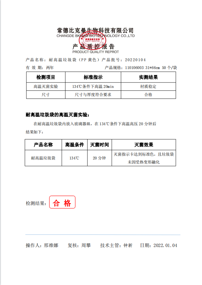 耐高溫垃圾袋生 黃色 31x66cm (PP復(fù)合膜材質(zhì)) 50個袋 110106003 20220104