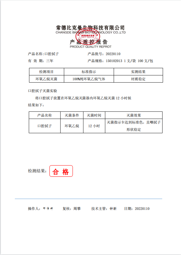 比克曼生物 口腔拭子(獨(dú)立裝) 1支袋 100支包 150102013 20220110