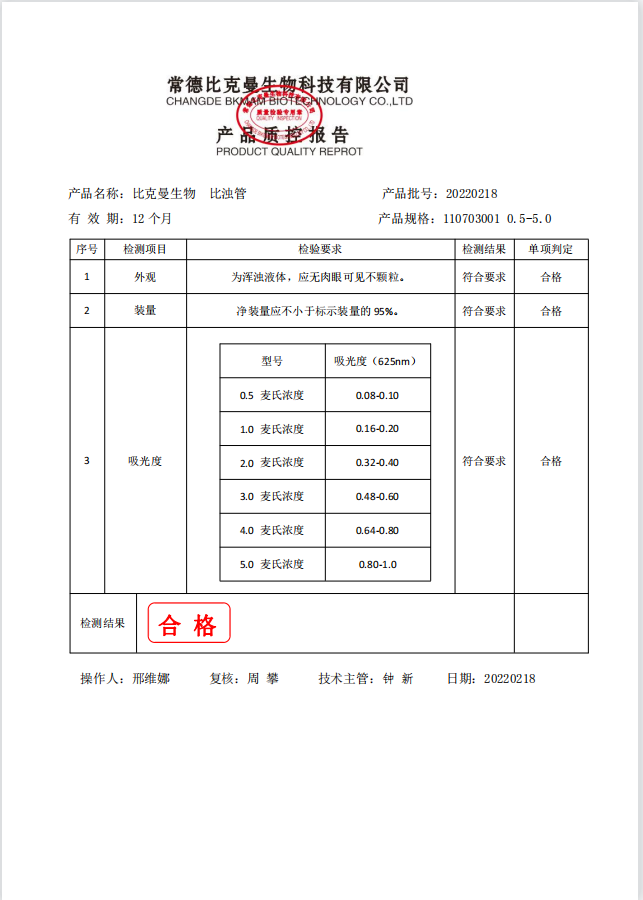 比克曼生物 比濁管 110703001 0.5-5.0 20220218