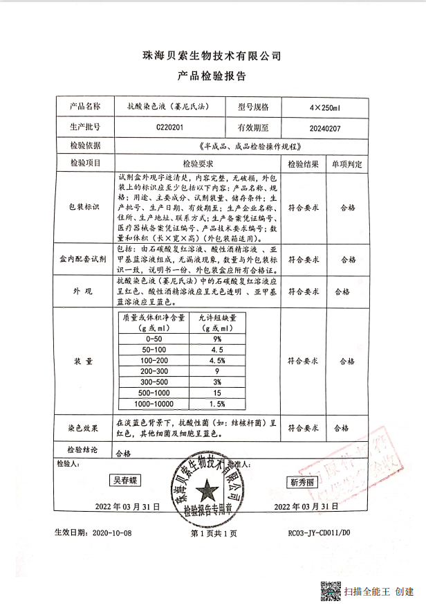貝索 抗酸染色液(萋尼氏法) 4x250ml C220201