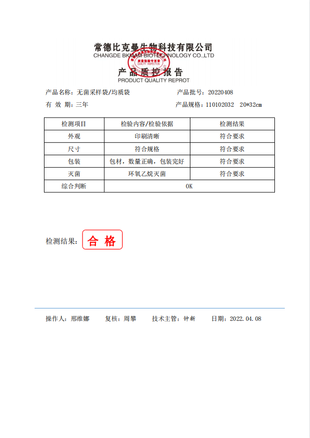 無菌均質(zhì)袋(不可立帶壓條)20x32cm 100個裝 110102032 20220408