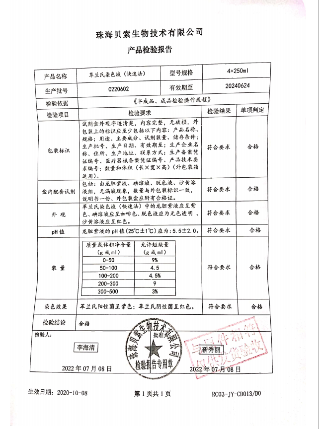 貝索 革蘭氏染色液(快速法) 250ml4盒 BA4012 C220602