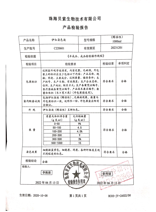 貝索 伊紅染液(醇溶性) 1000ml BA4022 C220601
