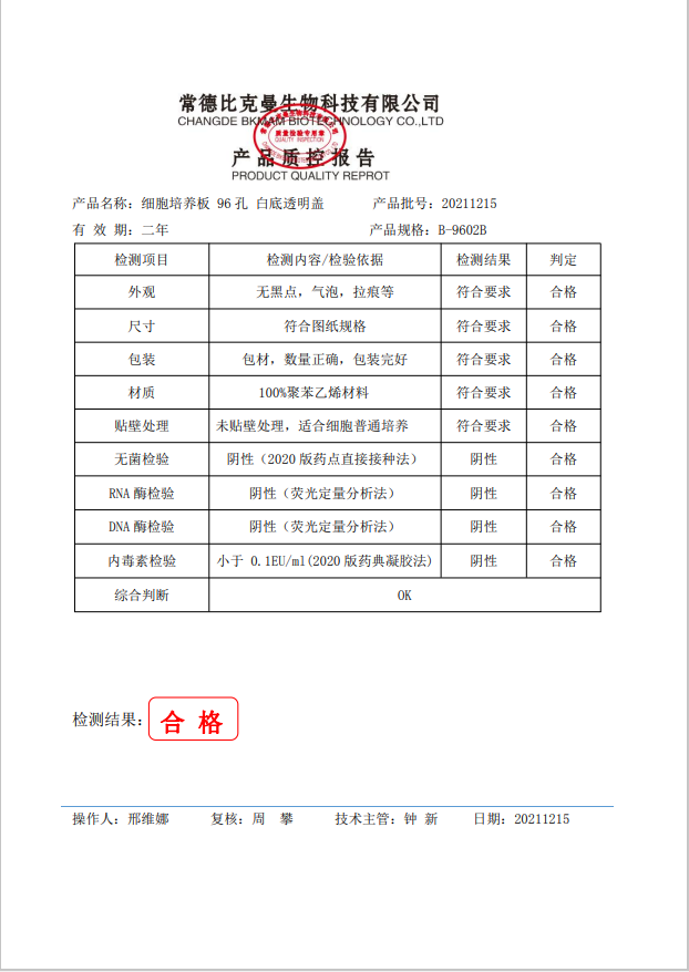 比克曼生物 細胞培養(yǎng)板 96孔(白底透明蓋) B-9602B 20211215