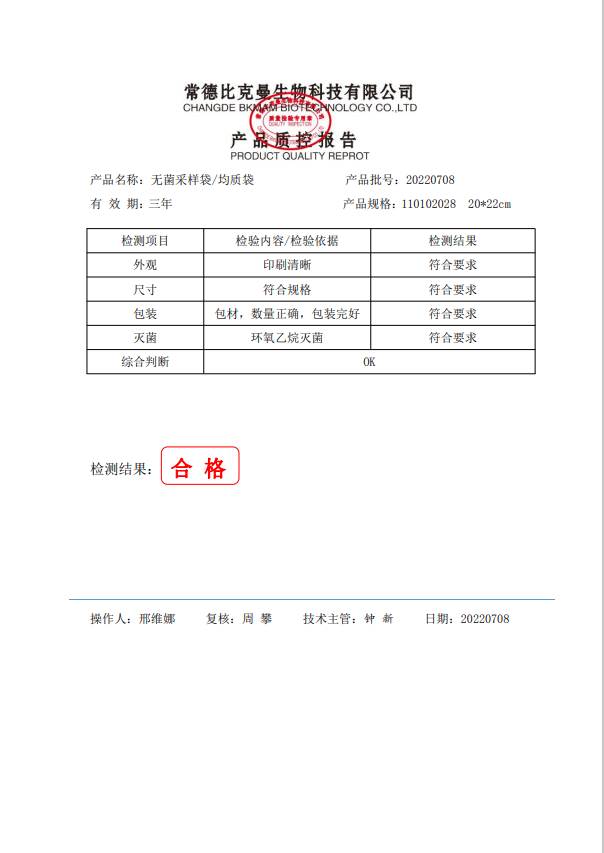 立式無菌采樣袋 20x22(帶壓條) 100個裝 110102028 20220708