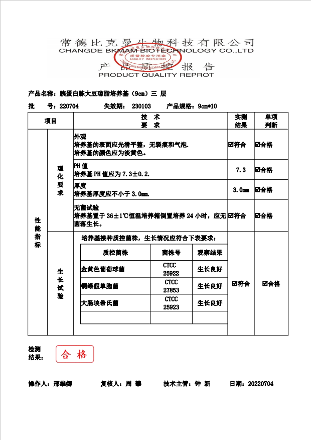 比克曼生物 胰蛋白胨大豆瓊脂(三層包裝) TSA瓊脂平板 9cm 10個袋 110704022 20220704