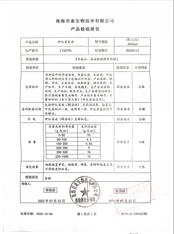 貝索 伊紅染液(醇溶性) 1000ml BA4022 C220701
