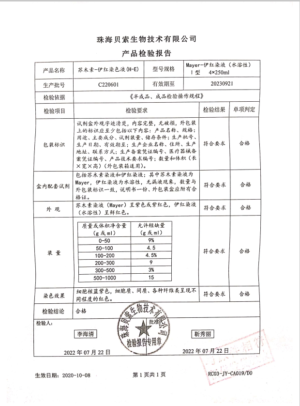 貝索 蘇木素-伊紅染色液(H-E) Mayer-伊紅染液(水溶性)I 型 4x250ml BA4027 C220601