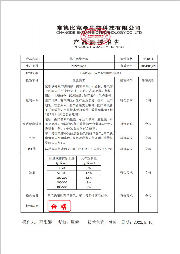 比克曼生物 革蘭氏染色液 20ml4支裝 110703003 20220510