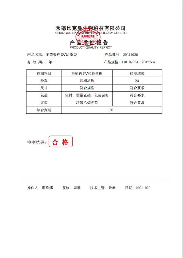 立式無菌采樣袋 20x27(無印刷帶壓條) 100個(gè)裝 110102024 20211020