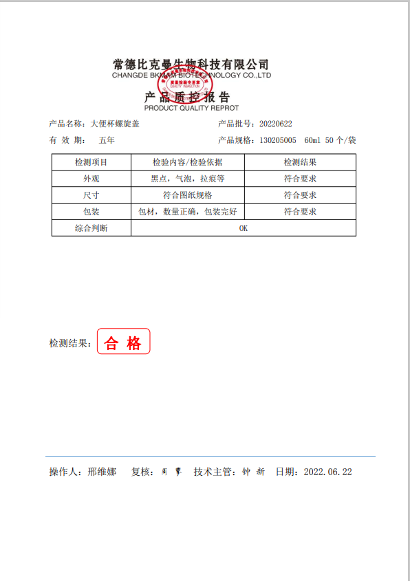 BKMAM 大便杯螺旋蓋 60ml 130205005 50個袋 20220622