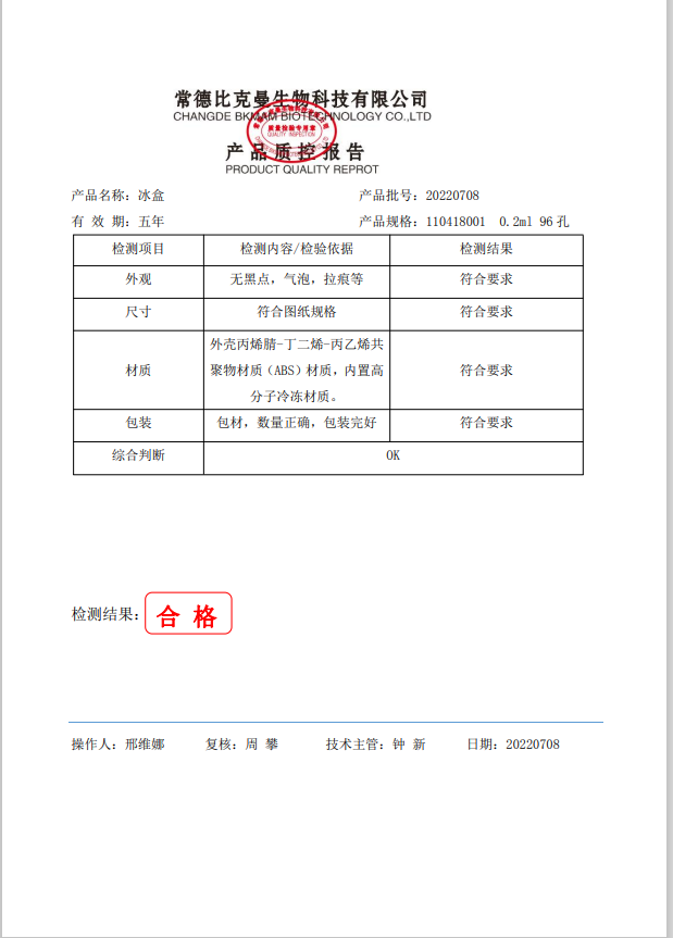 比克曼生物 冰盒 0.2ml96孔 110418001 20220708