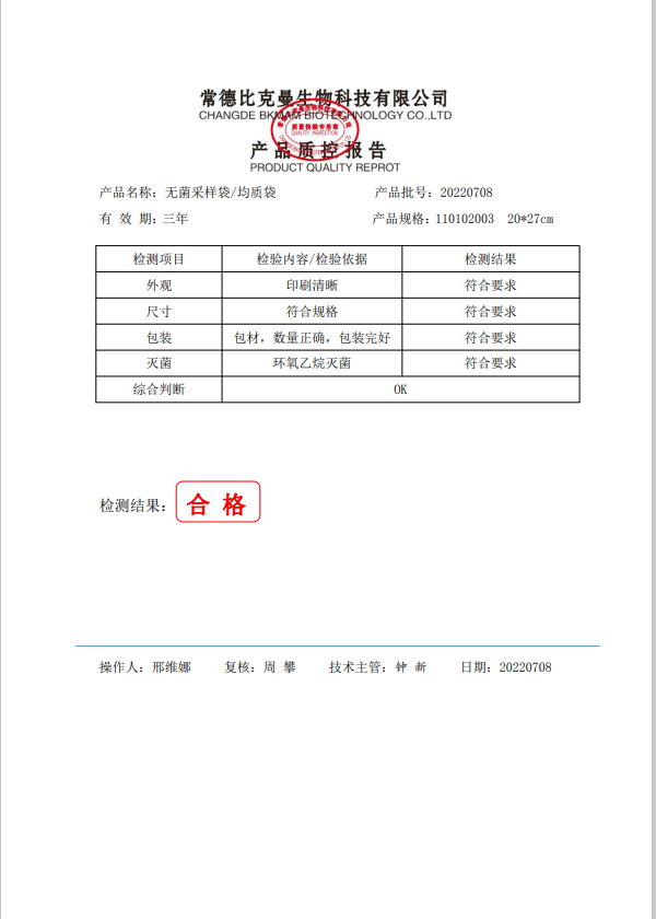 立式無菌采樣袋 20x27(帶壓條) 100個(gè)裝 110102003 20220708