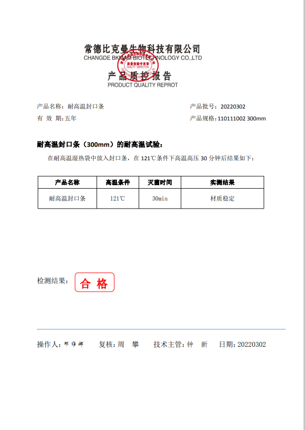 比克曼生物 耐高溫封口條300mm 50根包 110111002 20220302