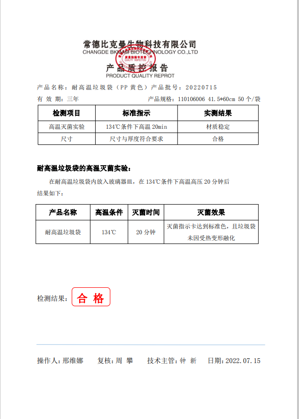 耐高溫垃圾袋生 黃色 41.5x60cm (PP復合膜材質(zhì)) 50個袋 110106006 20220715