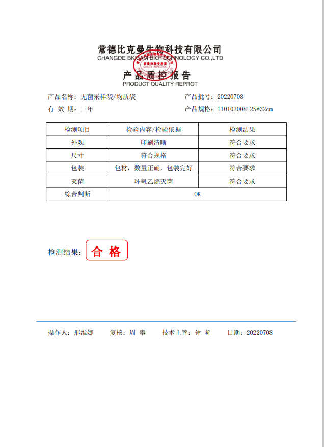 立式無菌采樣袋 25x32 (帶壓條) 50個裝 110102008 20220708