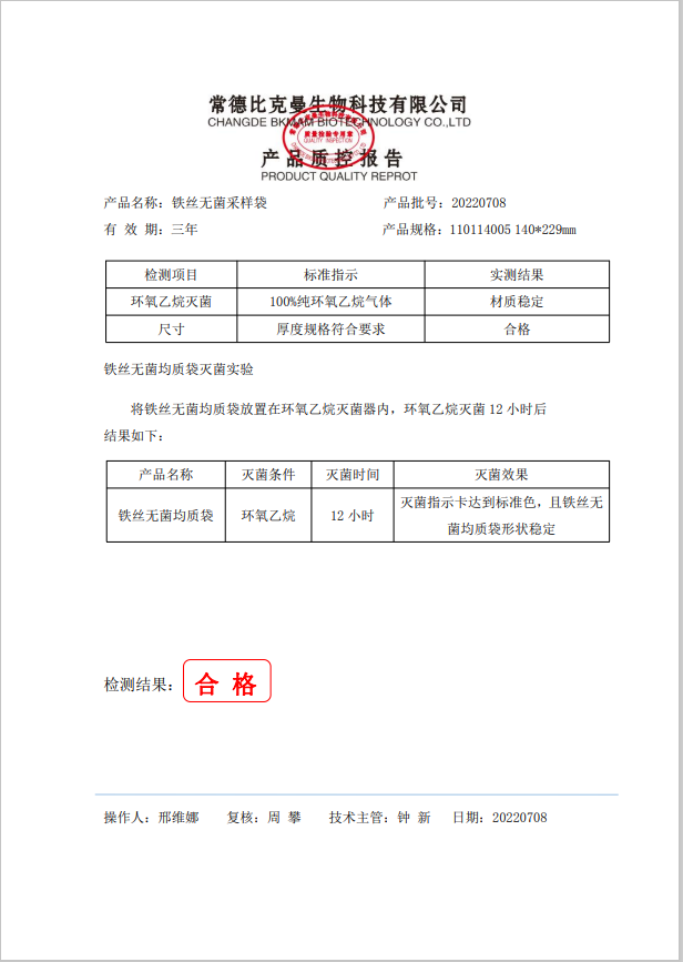 鐵絲無菌采樣袋 140x229 (帶書寫區(qū)域) 100個裝 110114005 20220708