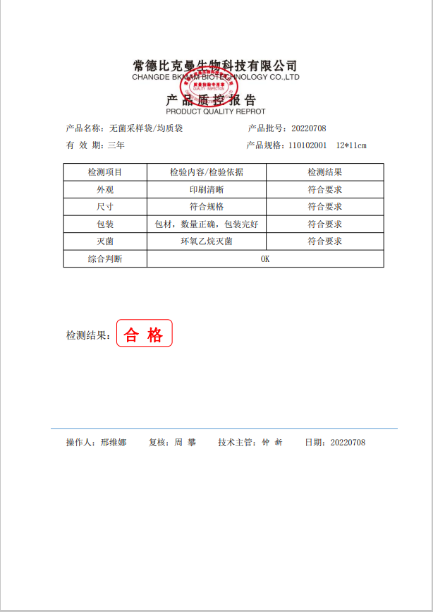 無(wú)菌采樣袋 12x11 (帶壓條) 100個(gè)裝 110102001 20220708