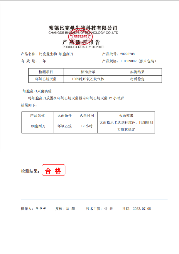比克曼生物 細胞刮刀 綠色(獨立包裝) 110309002 20220708