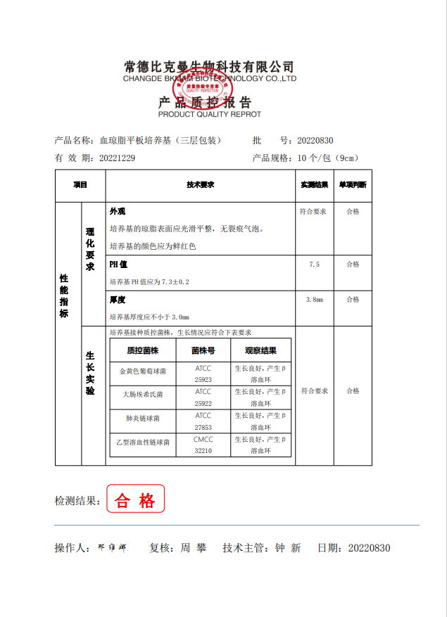 比克曼生物 血瓊脂平板培養(yǎng)基 (三層包裝)9cm 10個(gè)袋 110704011 20220830