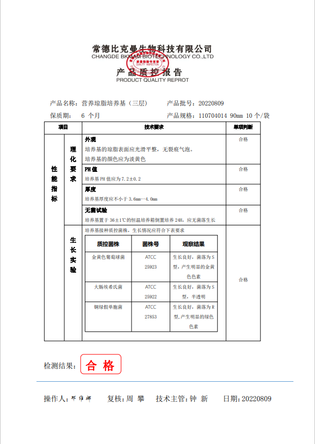 比克曼生物 營養(yǎng)瓊脂平板 (三層包裝) 9cm 10個袋 110704014 20220809