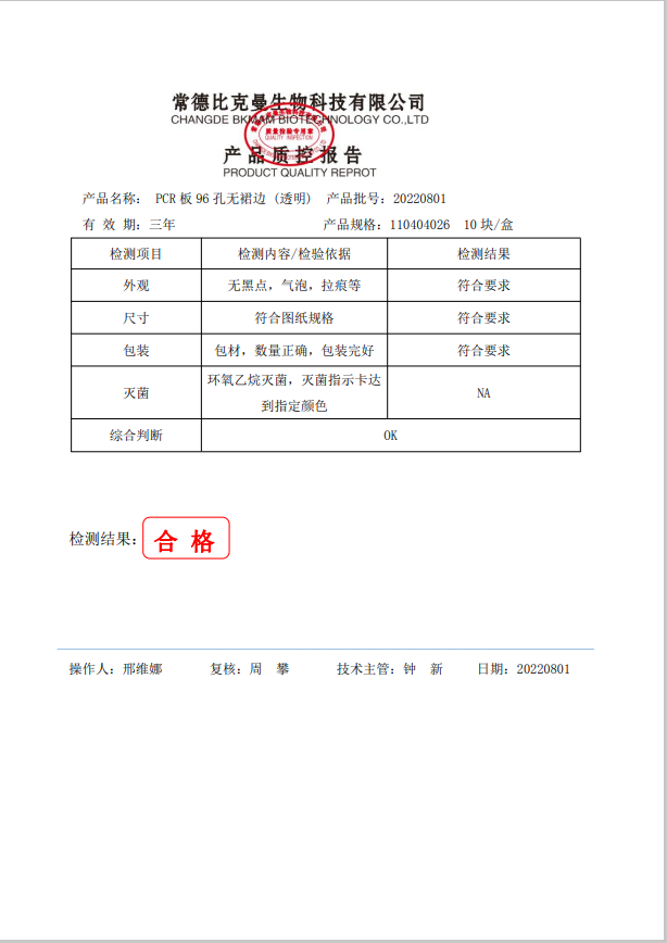 PCR板96孔無裙邊 (透明) 0.1ml 10塊盒 110404026 20220801