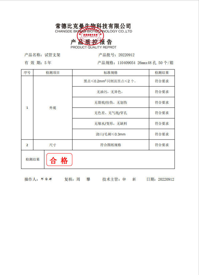 比克曼生物 試管支架48孔 26mmx48孔 PP 110409054 20220912