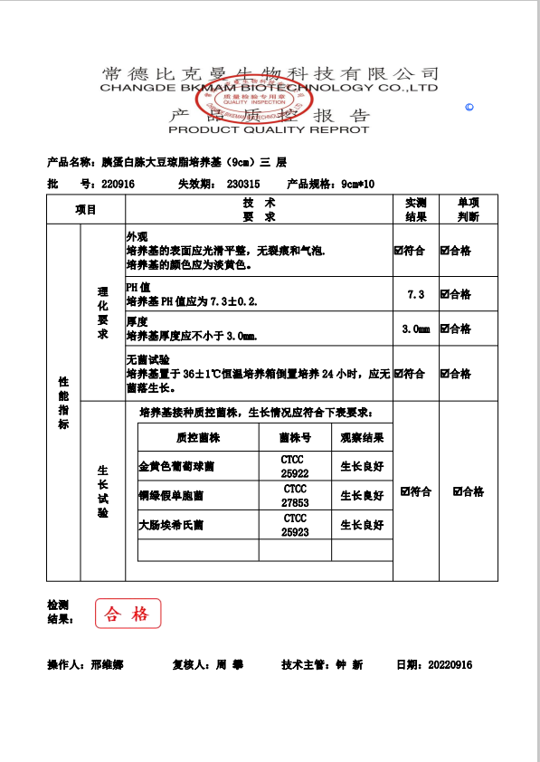 比克曼生物 胰蛋白胨大豆瓊脂(三層包裝) TSA瓊脂平板 9cm 10個袋 110704022 20220916