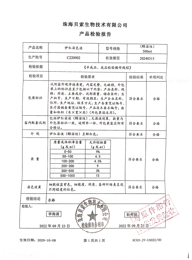 貝索 伊紅染液(醇溶性) 1000ml BA4022 C220902