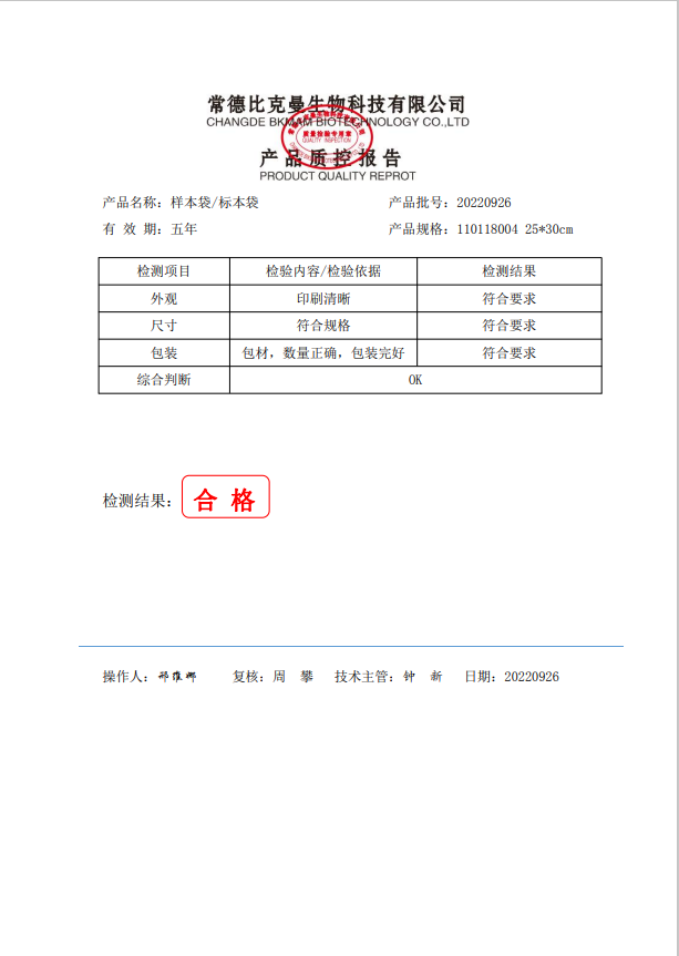 比克曼生物 樣本袋 25x30cm 100個(gè) 袋 110118004 20220926