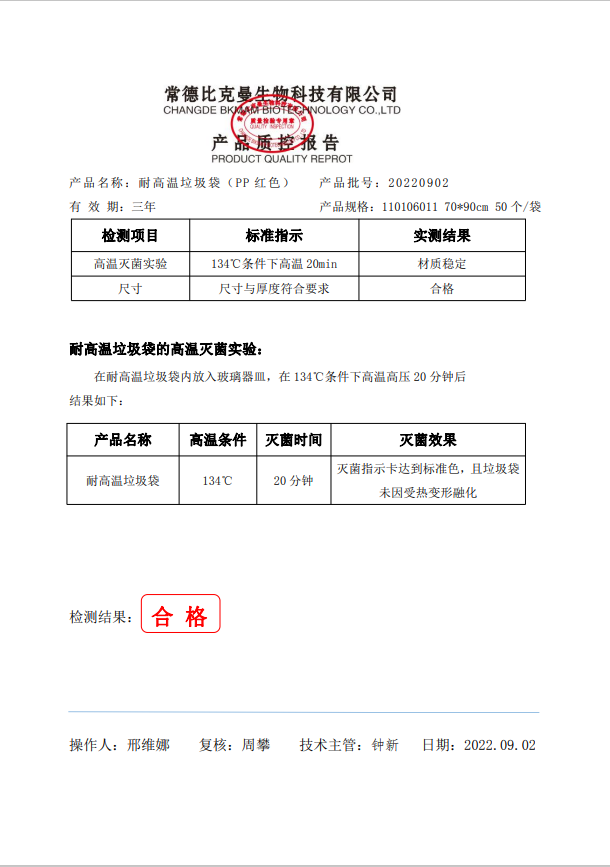 耐高溫垃圾袋生 紅色帶變色指示標 70x90cm (PP復(fù)合膜材質(zhì)) 50個袋 110106011 20220902