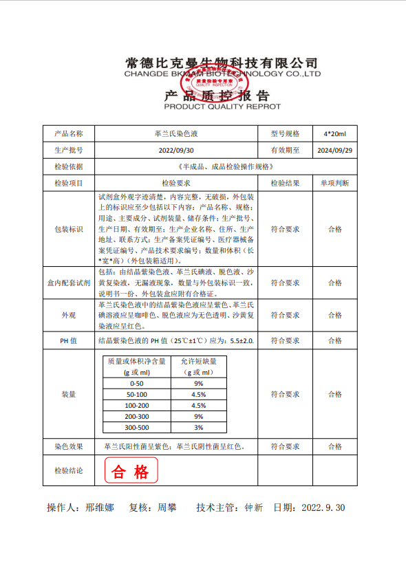 比克曼生物 革蘭氏染色液 20ml4支裝 110703003 20220930