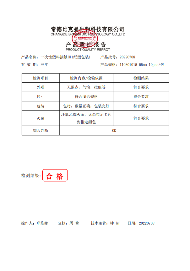 一次性塑料接觸皿 (紙塑包裝) 55mm 10個袋 110301015 20220708