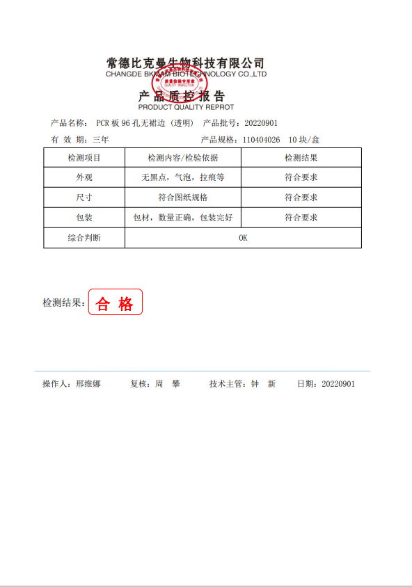 PCR板96孔無裙邊 (透明) 0.1ml 10塊盒 110404026 20220901