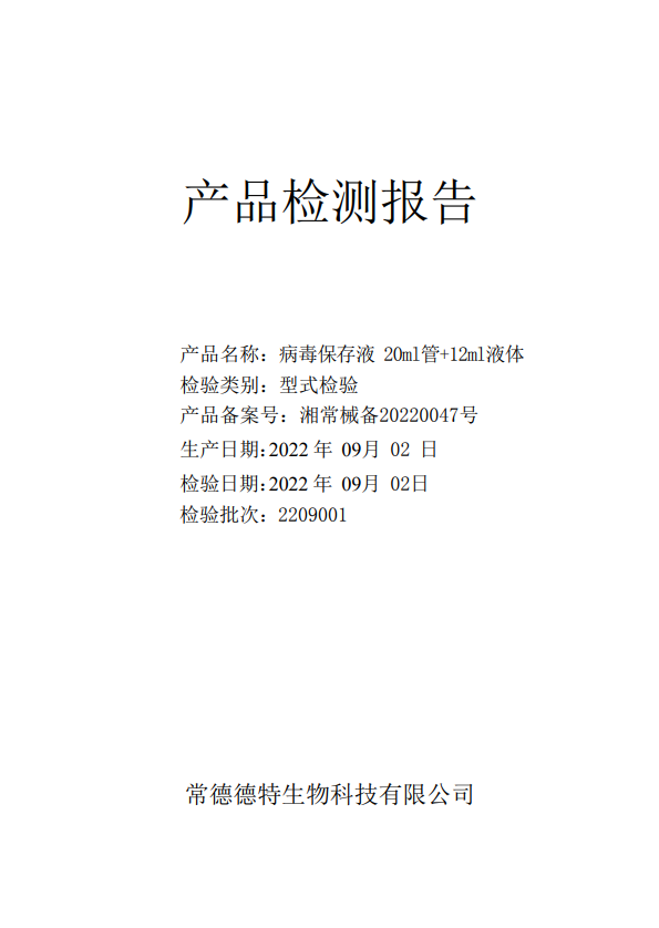 德特 病毒保存液 20ml管+12ml液體(C-03滅活型)質(zhì)檢報(bào)告-生產(chǎn)批號 2209001 生產(chǎn)日期 20220902
