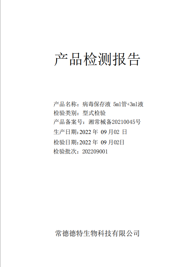 德特 病毒保存液 5ml管+3ml液體(C-03滅活型) 質(zhì)檢報(bào)告-生產(chǎn)批號(hào) 202209001 生產(chǎn)日期 20220902