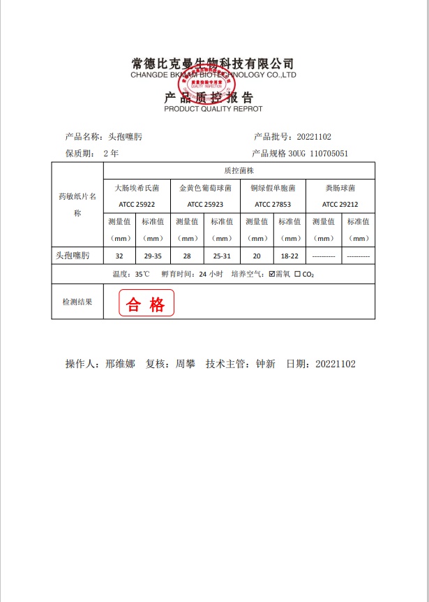 比克曼生物 頭孢噻肟 30UG 110705051 20片瓶 20221102