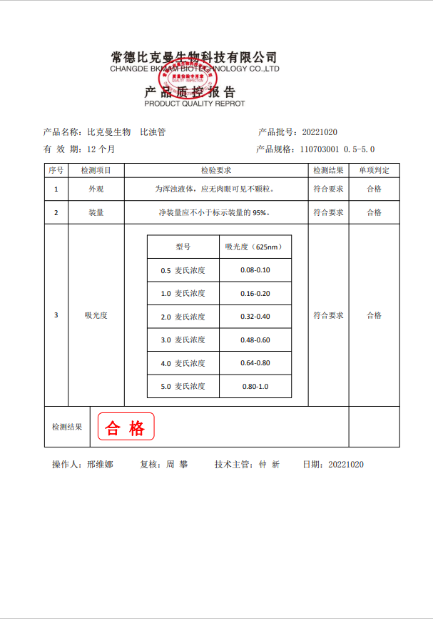 比克曼生物 比濁管 110703001 0.5-5.0 20221020