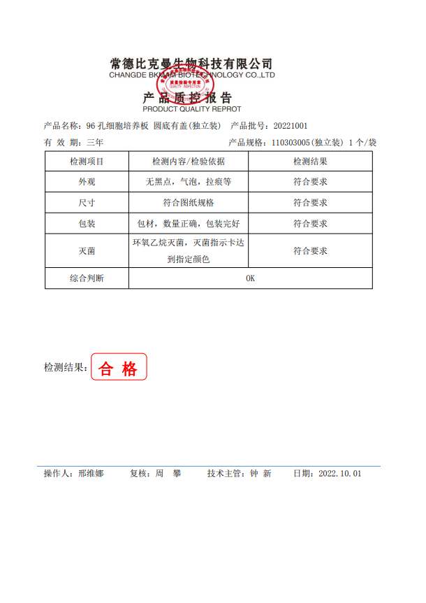 110303005 96孔細胞培養(yǎng)板 圓底有蓋 (獨立裝) 1個袋 20221001