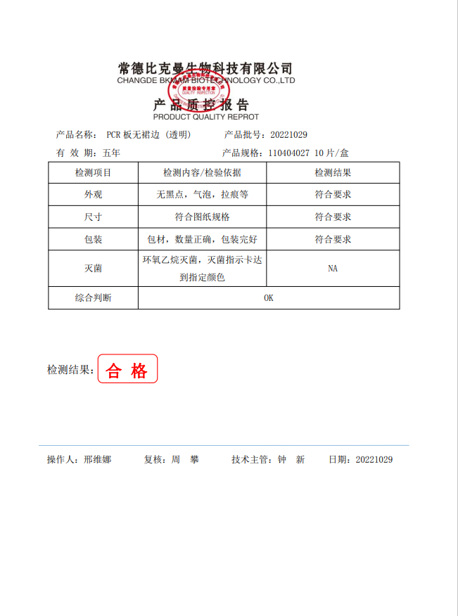 110404027 比克曼生物 PCR板無裙邊 (透明) 0.2ml 10片盒 20221029