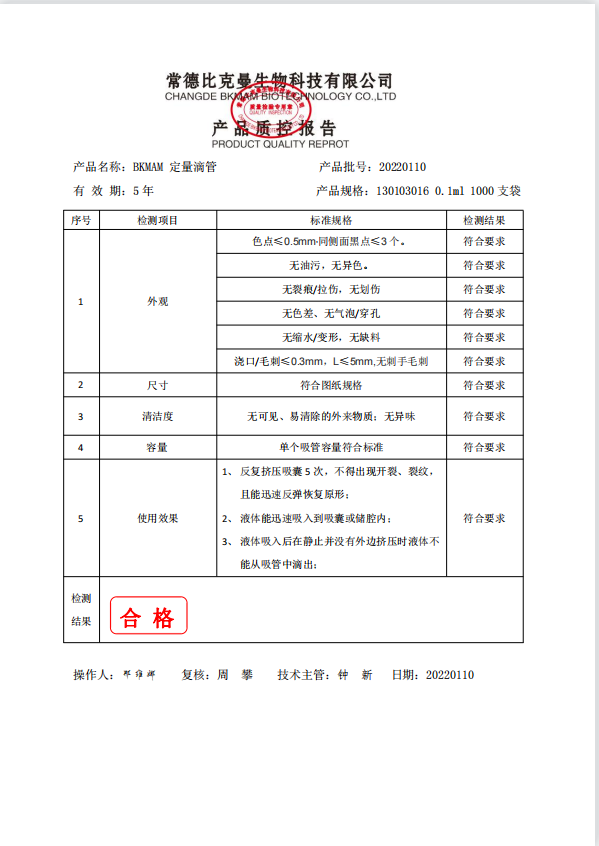 BKMAM 定量滴管 0.1ml 1000支袋 130103016 20220110
