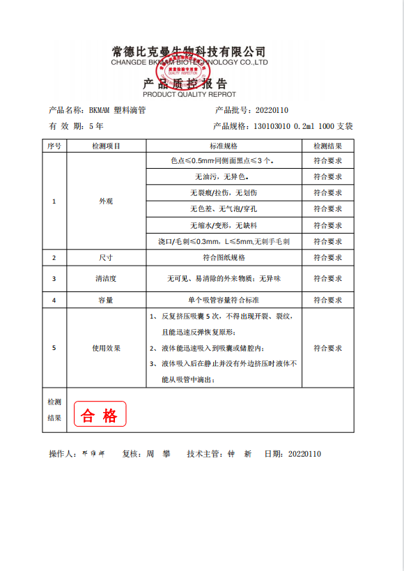 BKMAM 塑料滴管 0.2ml 1000支袋 130103010 20220110