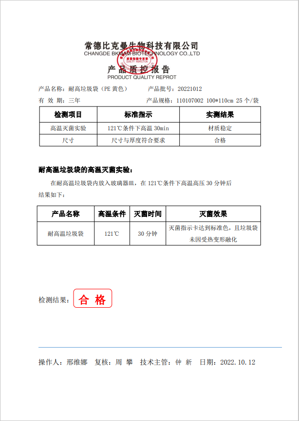 110107002 耐高溫垃圾袋 黃色 100x110cm (PE復(fù)合膜材質(zhì)) 25個(gè)袋 20221012