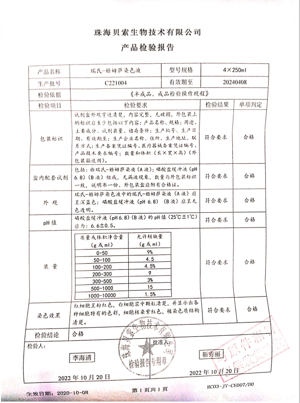 貝索 瑞氏-姬姆薩染色液 250mlx4 C221004