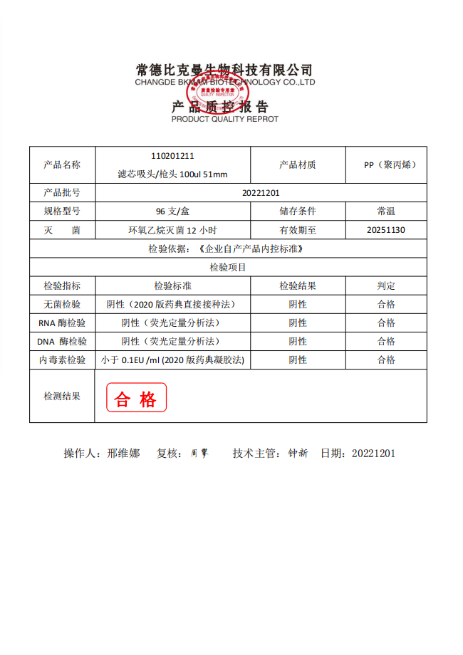 110201211 濾芯吸頭 槍頭 100ul 51mm 96支裝 20221201