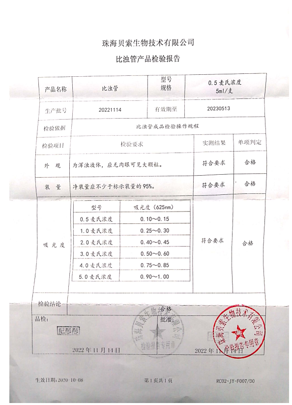 貝索 麥氏比濁管 (0.5濃度5支(5支盒) BC1115A 20221114